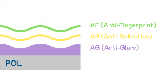 A.R.T.尊时凯龙光电发展出独家的表面处理跟多层镀膜技术,,让外部光线照射到显示器表面时所产生的反射光大幅降低。。。 |